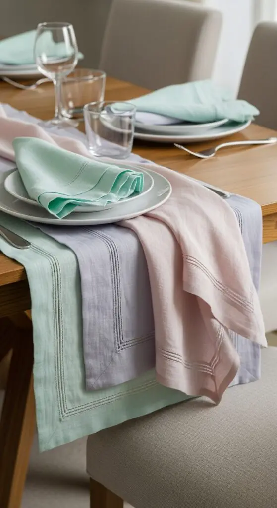 Pastel Table Runners and Linens for Soft Seasonal Color