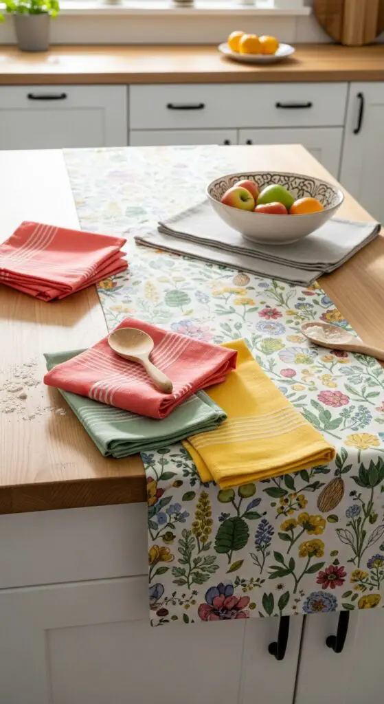 Three simple linen updates can energize your kitchen island into a lively spring centerpiece that welcomes the season’s fresh energy. I’ll show you how festive kitchen towels in coral, sage green, or sunny yellow instantly brighten your workspace while adding practical functionality.