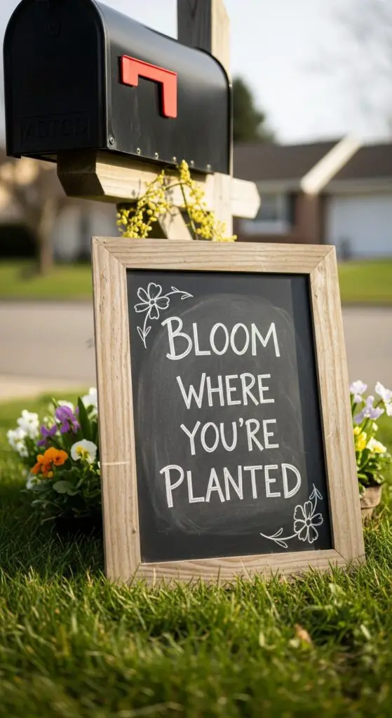 Creative chalkboard messages can celebrate spring’s arrival with phrases like “Bloom Where You’re Planted” or “Spring Has Sprung!” Weather-resistant chalkboard paint alters old wooden boards into customizable canvases that you can update weekly or monthly. Position your sign at eye level near your mailbox for maximum impact and visibility from the street.