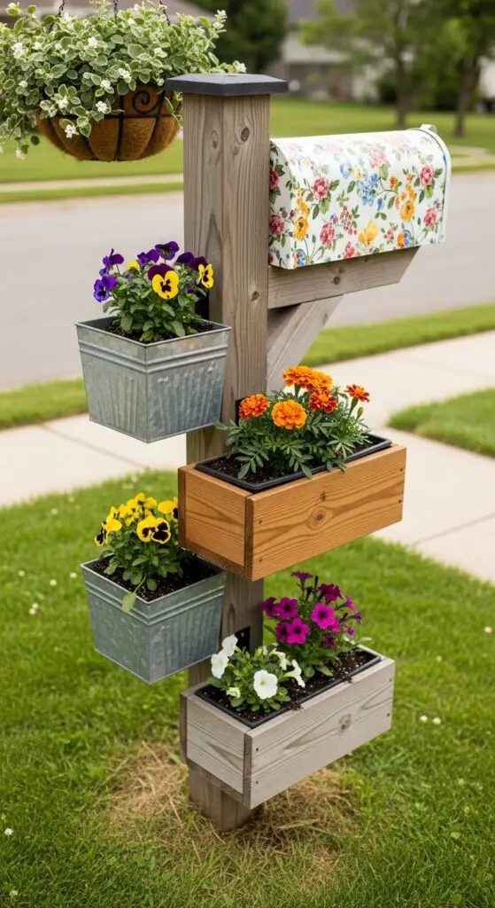 Mini planter boxes convert your mailbox post into a blooming vertical garden that showcases spring’s finest flowers and foliage. I recommend installing wooden or metal boxes at different heights to create visual interest and maximize planting space.
