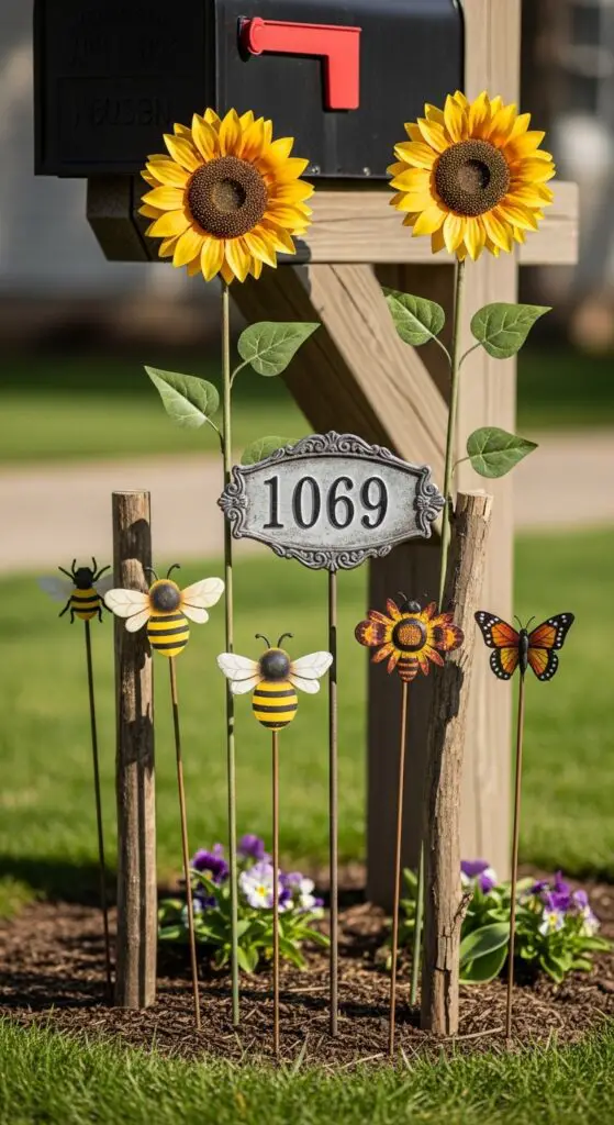 Several decorative garden stakes and picks can energize your mailbox area into a lively spring focal point that greets visitors with seasonal flair. I recommend placing rustic wooden stakes featuring butterflies, flowers, or seasonal messages around your mailbox’s base for instant charm.