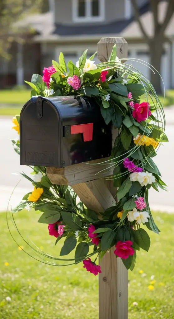 Although artificial materials might seem less authentic, weather-resistant spring garlands and swags offer the perfect solution for mailbox decorating that lasts through unpredictable spring weather. I recommend selecting high-quality silk flowers and UV-resistant foliage that won’t fade or deteriorate quickly.