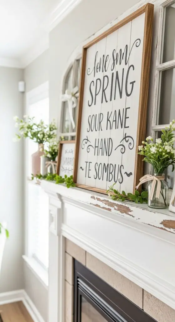 Wooden signs bring personalized charm to your spring mantle while adding typography-based visual interest alongside your floral displays. Hand painted wooden signs featuring phrases like “Spring Has Sprung” or “Bloom Where You’re Planted” create focal points that celebrate the season’s renewal.