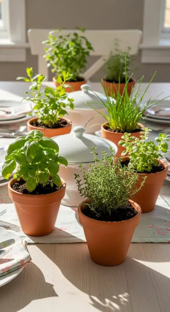 Nothing alters your spring table quite like small terracotta pots brimming with aromatic herbs that guests can actually use during their meal. These mini terra cotta pot displays enhance ordinary dining into an interactive experience where people can snip fresh basil for pasta or mint for drinks.