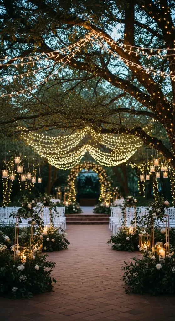 While fairy lights illuminate your ceremony from above, creating a stunning petal-scattered aisle runner alters the ground beneath your feet into a romantic pathway worthy of your special moment. You’ll change ordinary walkways into enchanting floral pathways that guests will remember forever.