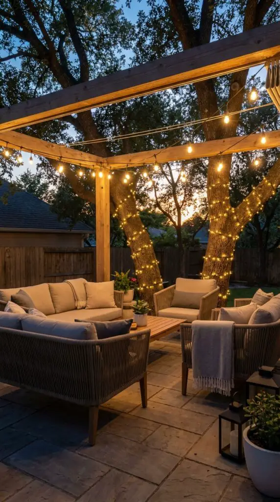 String lights metamorphose your evening yard into a magical wonderland that extends your outdoor enjoyment well beyond daylight hours. I recommend installing warm white LED lights for energy efficiency and longevity. Wrap them around tree trunks, drape between fence posts, or outline pergolas and patios for stunning illumination.