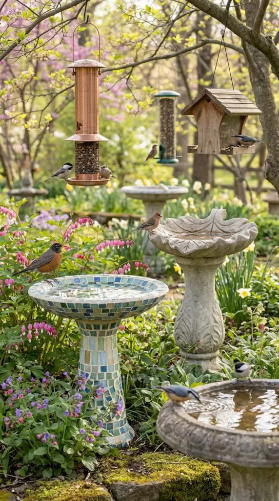 Additionally, incorporate bird feeders with colorful accents that complement your existing color scheme while providing essential nourishment for local bird populations throughout the spring season.