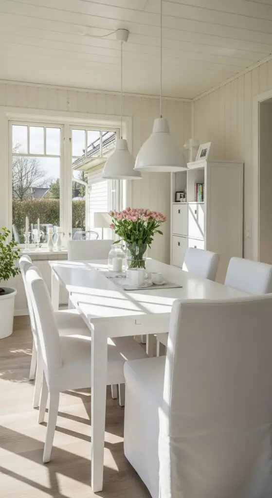 When you’re designing a sunroom dining space, all-white furniture becomes your secret weapon for amplifying natural light throughout the room. White dining tables, chairs, and storage pieces bounce sunlight into darker corners, creating an airy atmosphere that feels unrestricted and open.