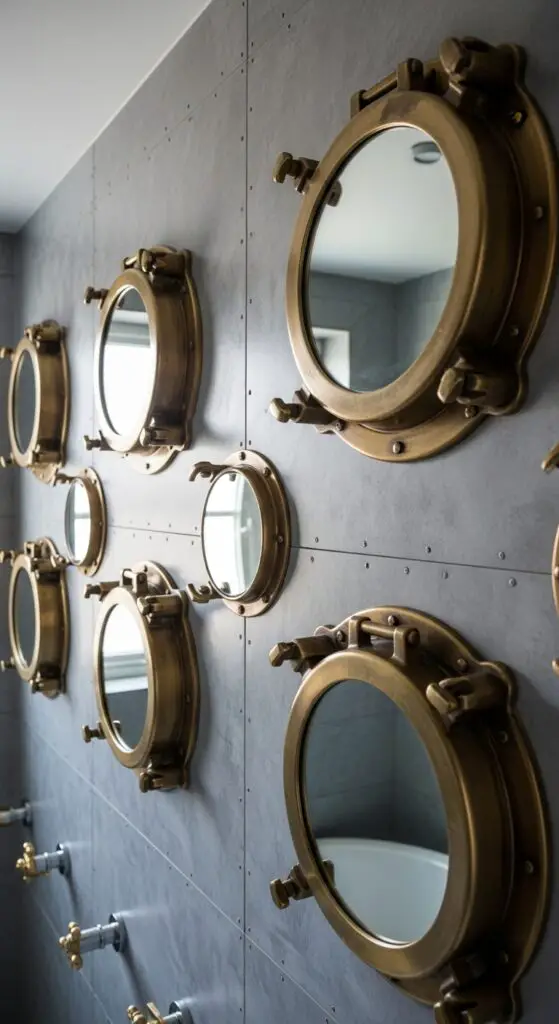 Alter your child’s bathroom walls into submarine viewing windows with authentic porthole mirrors that instantly experience young adventurers beneath the waves. Rounded porthole frames transform ordinary mirrors into convincing ship windows, creating the illusion you’re peering through a submarine’s hull. Install multiple mirrors at varying heights to accommodate growing children and visiting friends.