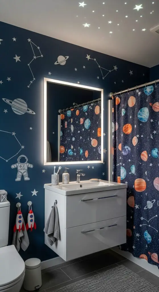 As your little astronauts dream of exploring distant planets and soaring through starlit skies, a space and galaxy theme metamorphoses their bathroom into an intergalactic odyssey zone.