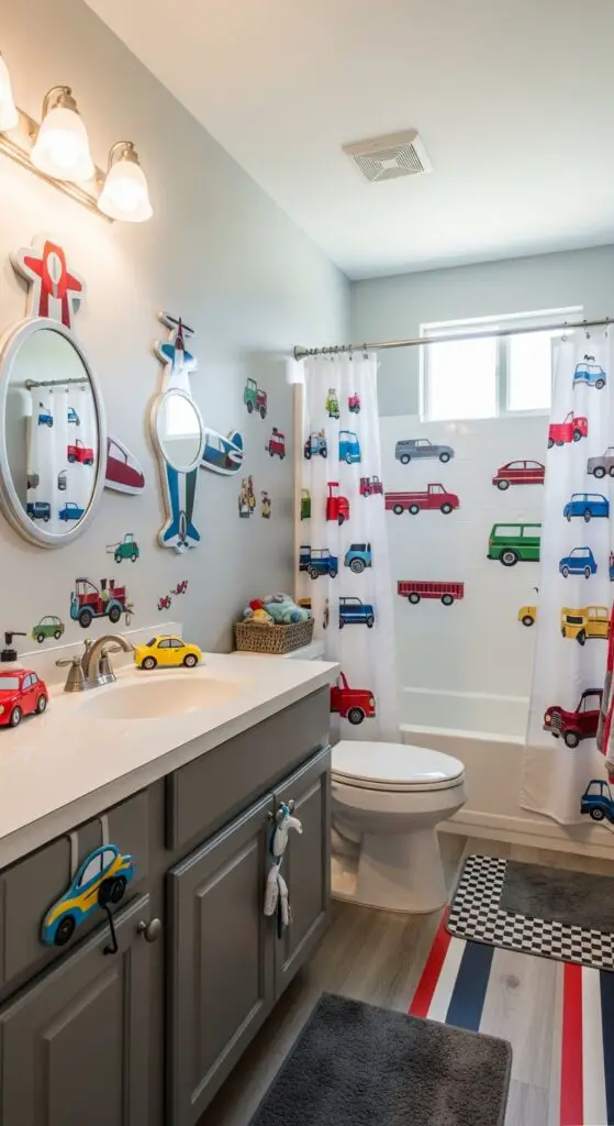 These playful themes work especially well for boys’ bathrooms where you want to maintain a unisex appeal while incorporating bold, energetic design elements.