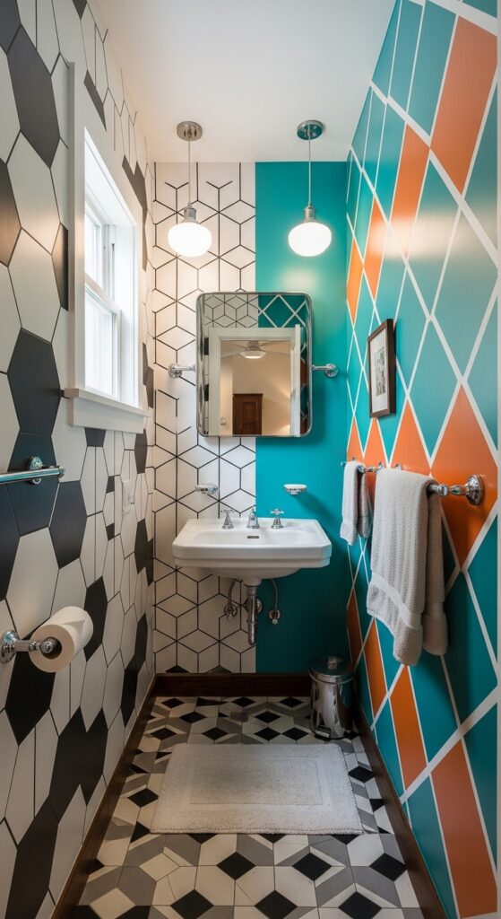 Create a Bold Geometric Powder Room With 1960s Flair