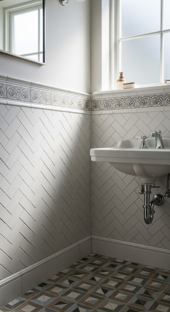 Consider black-and-white checkerboard patterns for classic Art Deco appeal, or choose penny tiles for authentic period charm. Unique mosaic designs featuring geometric shapes or floral motifs create stunning focal points in compact spaces. Install subway tiles in herringbone patterns for sophisticated vintage character.
