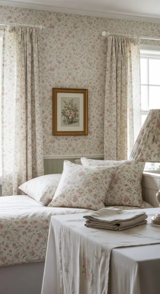Layer Delicate Floral Patterns Through Wallpaper and Fabrics